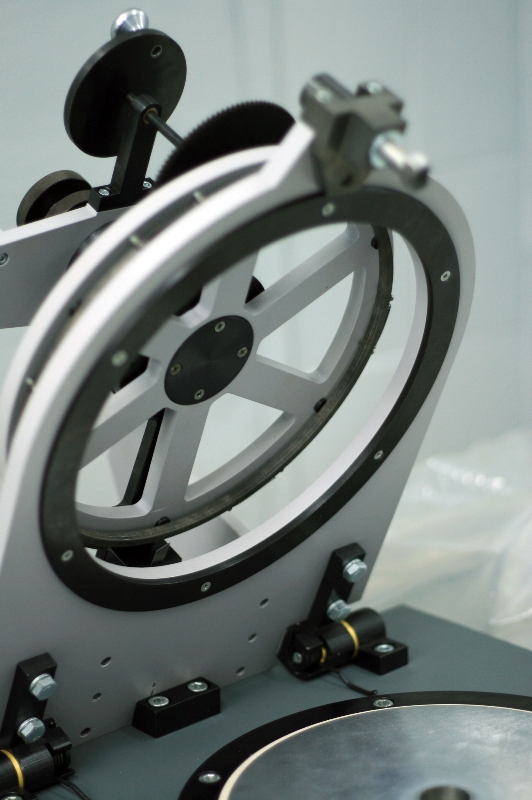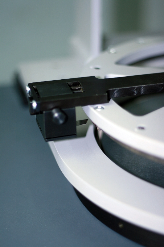 Растяжение пленки на установке DME-220 производится следующим образом: внутреннее кольцо пялец устанавливается на подогреваемый столик, внешнее кольцо пялец устанавливается в крышку, разрезанная пластина, закрепленная на рамке с пленочным носителем, устанавливается между столиком и крышкой. По команде оператора столик начинает подниматься вверх, растягивая пленку и смыкая внутреннее и внешнее кольца пялец. Таким образом, растянутая пленка с кристаллами оказывается зафиксированной в пяльцах.
