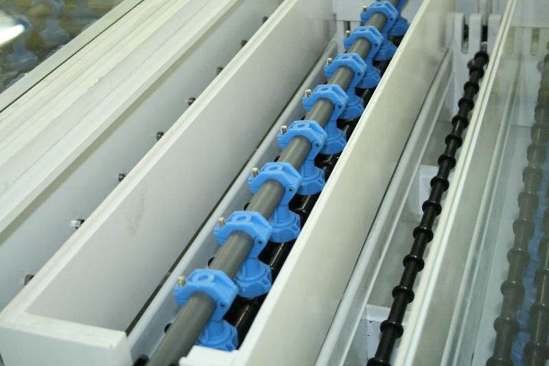 4.3. Модуль теплой промывки очищает заготовки от остатков химических продуктов. Процесс производится с помощью распылительной системы, состоящей из нескольких распыляющих коллекторов и соответствующих форсунок.