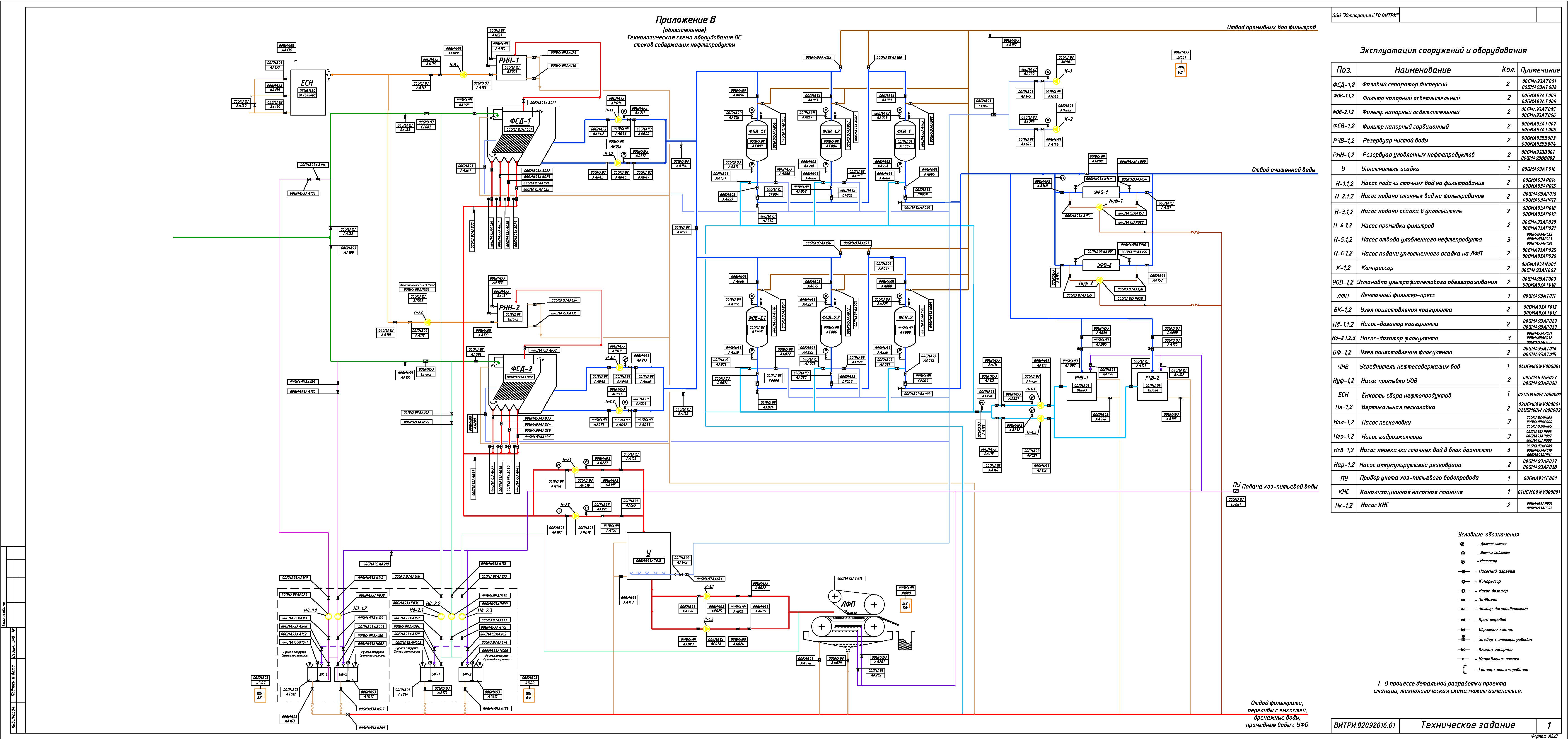 Осветленная вода после сепаратора фаз поступает в его камеру чистой воды, откуда насосом поз. Н1.1 (Н1.2, Н2.1, Н2.2) подается на фильтры поз. ФОВ-1.1, ФОВ-1.2 (ФОВ-2.1, ФОВ-2.2) направляется на механическую фильтрацию.